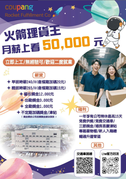 Coupang酷澎集團_火箭物流倉儲股份有限公司強力徵才中!